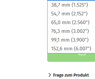 Einfach das 100mm Rohr wählen und dann kannst du im zweiten Schritt auf 6" auswählen.