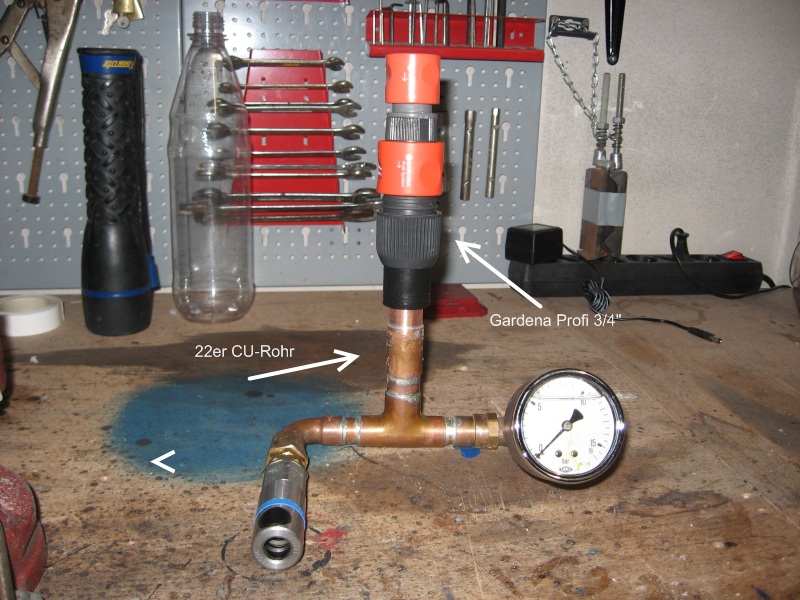 Also ich habe meine Gardena-Kupplung mit PU-Leim auf das Cu-Rohr geklebt, also die war bei 12,5 Bar noch dran, das war aber ne Standard-Kupplung für 1/2 Zoll, ob das bei Profi 3/4 Zoll auch hält, weiß ich jetzt nicht