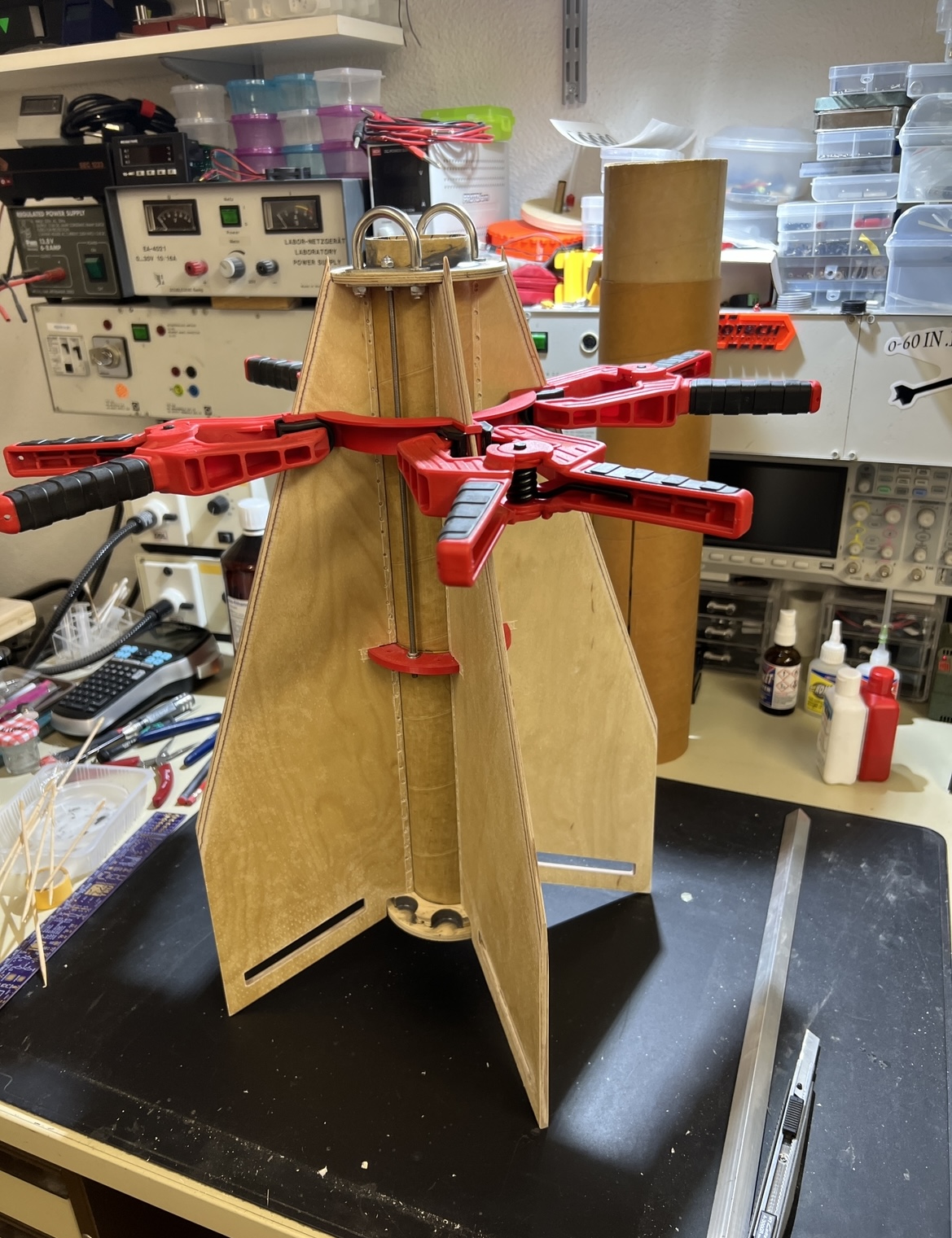 Finnen sind angefast… Habe mit dem Ausrichten begonnen … Ich drucke grade noch ein zweites Fin alignment… um mehr Stabilität in die Fixierung zu bekommen … morgen wird dann geheftet … Grüße Marco